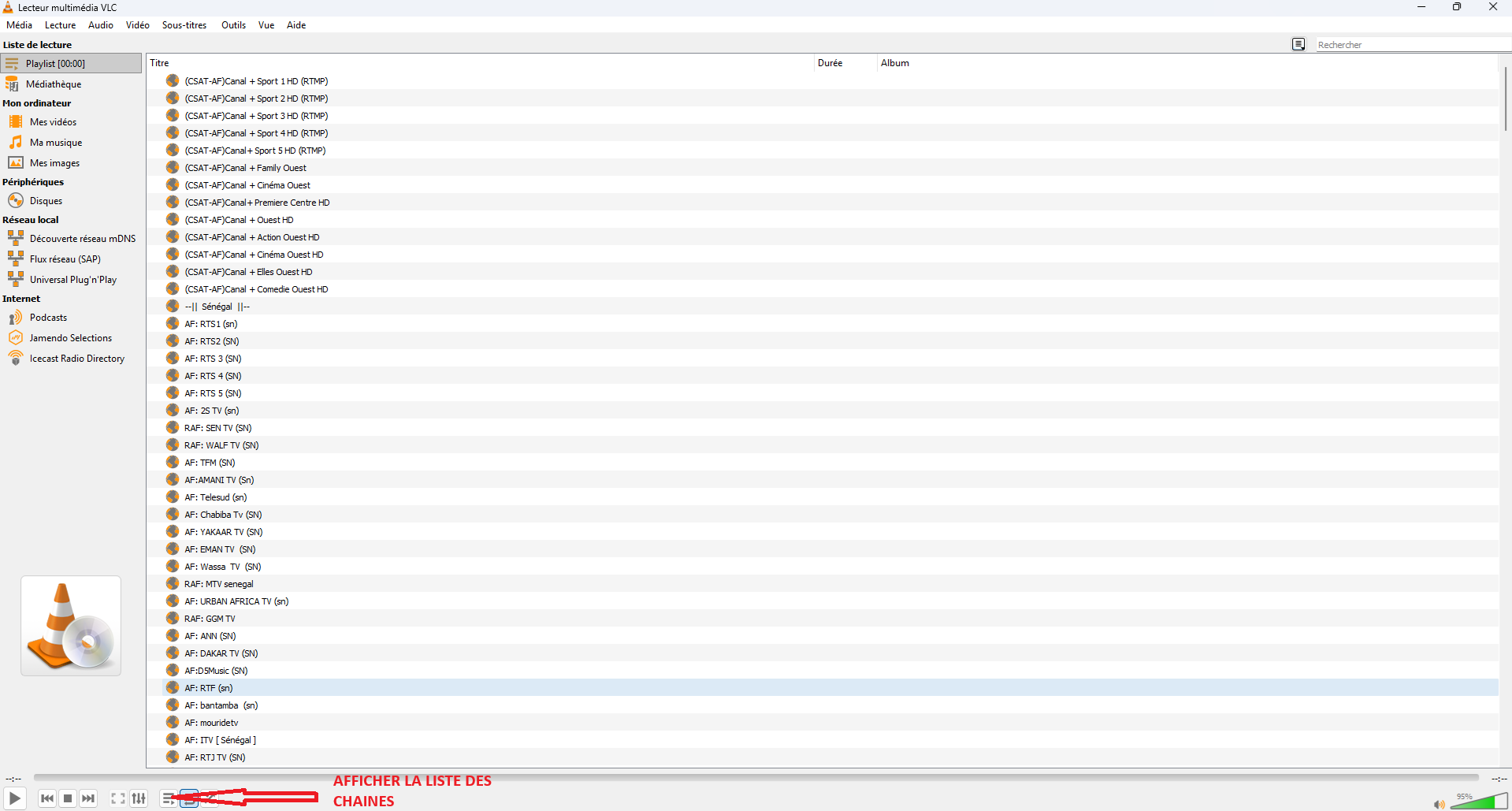 - Vous pouvez maintenant regarder vos chaînes IPTV directement dans VLC.